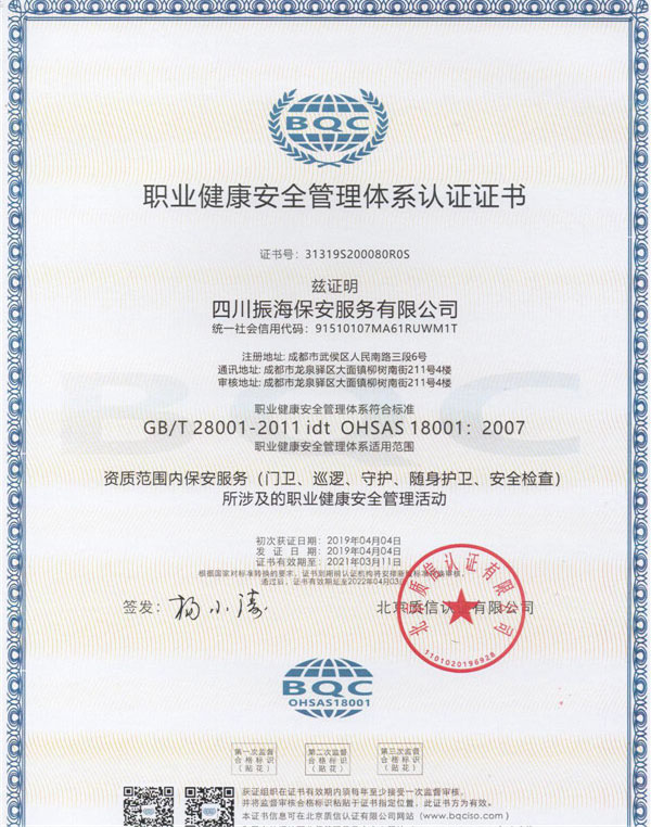職業(yè)健康安全管理體系認(rèn)證